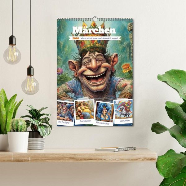 Wer kennt sie nicht? Die alten Erzählungen aus den spannenden Märchenbüchern. Von Aschenputtel, Dornröschen, Rumpelstilzchen und viele anderen. Schöne Geschichten, die hier einmal ganz anders erzählt werden. Dieser Kalender lädt zum Lachen ein. Die tollen Illustrationen wurden mit KI erstellt, erfreuen bestimmt alle Menschen mit viel Humor und bringen Spaß in jedes Zuhause.