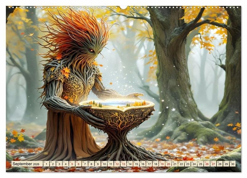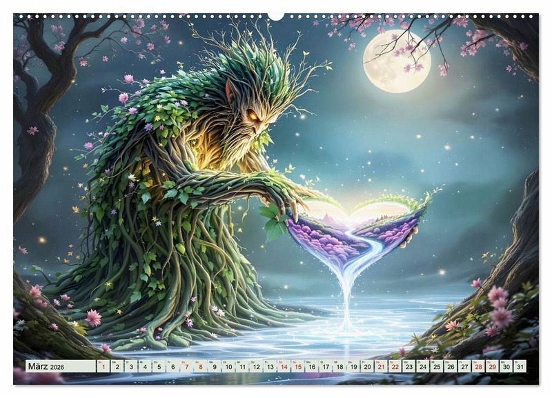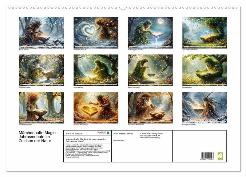 Tauchen Sie ein in eine Welt, in der Magie und Natur in einem atemberaubenden Tanz verschmelzen. Unser Kalender, von KI kreiert, enthüllt auf jeder Seite ein episches Bild, ein geheimnisvoller Magier, der an einen uralten Baum erinnert, entfesselt aus einer leuchtenden Schale die Landschaften des jeweiligen Monats, als ob er das Schicksal der Natur in seinen Händen hält. Ob frostige Winterwunder, frühlingshaftes Erwachen oder die glühende Romantik des Sommers, jede Seite erzählt ihre eigene, fesselnde Geschichte. Lassen Sie sich von diesem visuellen Gedicht ins Staunen versetzen und genießen ein Jahr voller magischer Augenblicke, dass Ihren Alltag in einen Traum aus Licht und Farbe verwandelt.