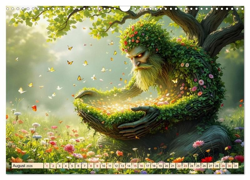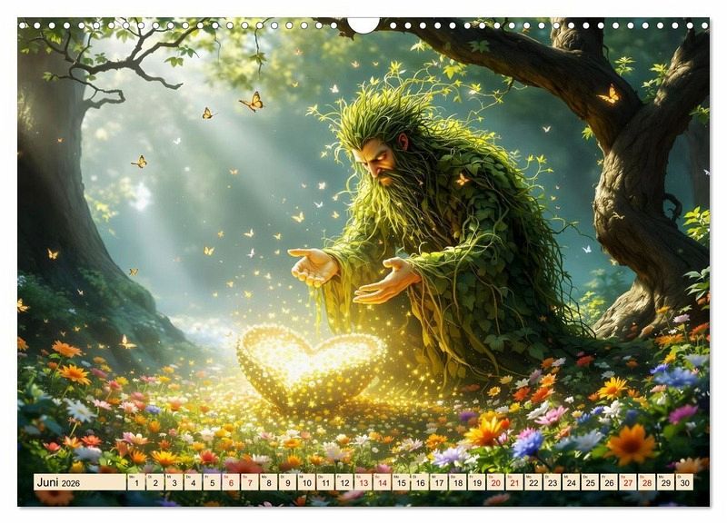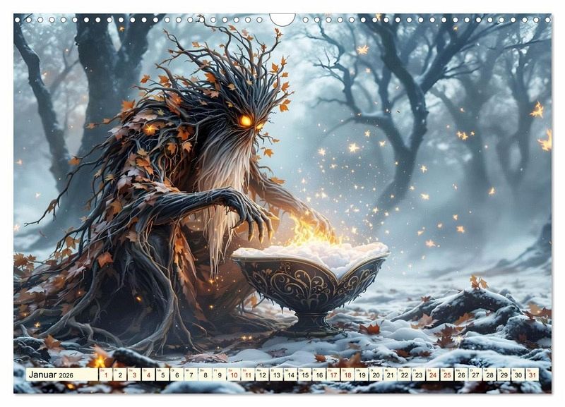 Tauchen Sie ein in eine Welt, in der Magie und Natur in einem atemberaubenden Tanz verschmelzen. Unser Kalender, von KI kreiert, enthüllt auf jeder Seite ein episches Bild, ein geheimnisvoller Magier, der an einen uralten Baum erinnert, entfesselt aus einer leuchtenden Schale die Landschaften des jeweiligen Monats, als ob er das Schicksal der Natur in seinen Händen hält. Ob frostige Winterwunder, frühlingshaftes Erwachen oder die glühende Romantik des Sommers, jede Seite erzählt ihre eigene, fesselnde Geschichte. Lassen Sie sich von diesem visuellen Gedicht ins Staunen versetzen und genießen ein Jahr voller magischer Augenblicke, dass Ihren Alltag in einen Traum aus Licht und Farbe verwandelt.