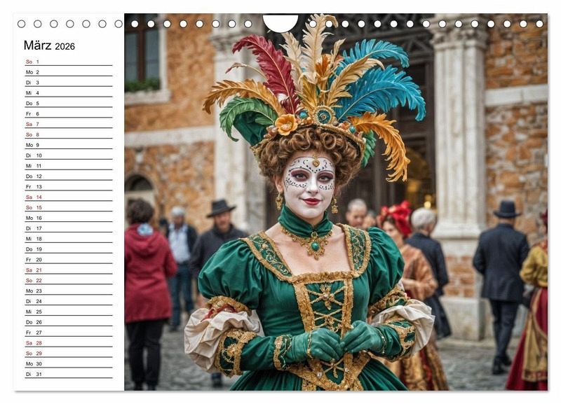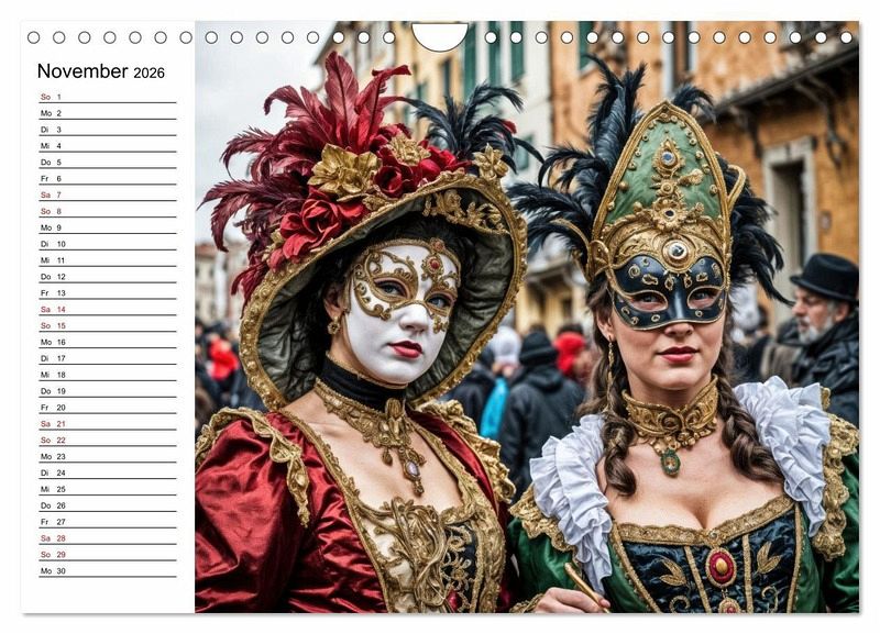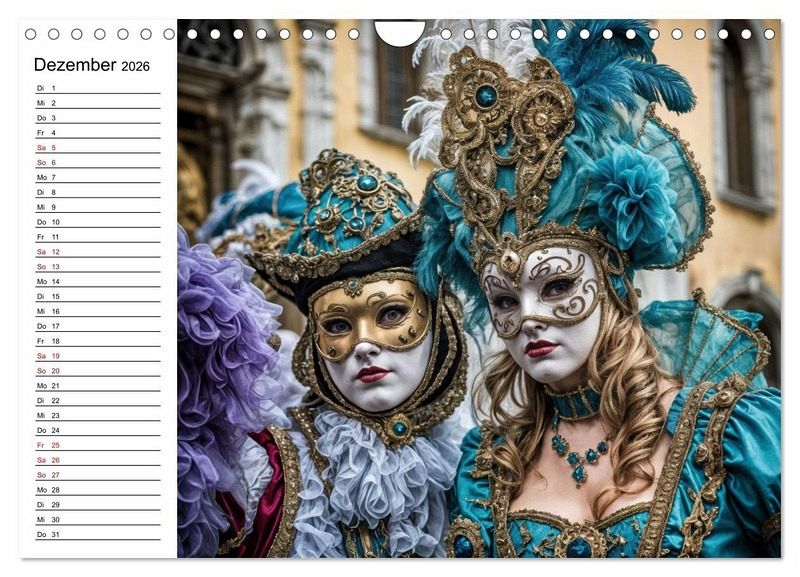 Erleben Sie die Eleganz und Extravaganz des venezianischen Karnevals jeden Tag! Sichern Sie sich jetzt Ihren Kalender und lassen Sie sich von der Schönheit Venedigs ver