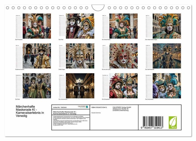 QUALITÄT - Hochwertiger Fotokalender mit 12 wunderschönen Motiven auf lichtbeständigem Bilderdruckpapier, robuste Spiralbindung mit Aufhängebügel.NACHHALTIG - deutliche Abfallreduzierung durch bedarfsgerechte Einzelstückfertigung, umweltfreundliches FSC-zertifiziertes Papier, Produktion in Deutschland, klimabewusste Logistik.PERFEKTES GESCHENK - Kalender für Freunde und Familie, für Kinder und Erwachsene, jung und alt, zu Weihnachten, Geburtstag oder zwischendurch.VIELFALT - Bildkalender in verschiedenen Formaten, z.B. DIN A5, DIN A4, DIN A3 sowie DIN A2. Ob Naturmotiv, Gemälde oder Fotos, ideal für ein persönliches Wohlfühlambiente.Erlebe die faszinierende Welt des venezianischen Karnevals mit atemberaubenden Masken und Kostümen von Autor(in): Claudia Schimmack