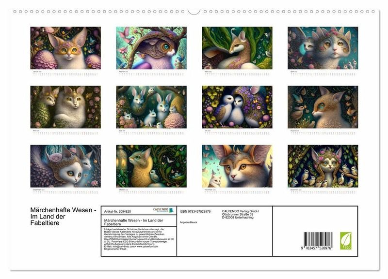 Willkommen in der wunderbaren Welt der Fabelwesen! Die durch KI generierten Bilder entführen Sie in eine fantastische Welt voller Magie und unvergesslicher Kreaturen. Ob für die Wand Ihres Zimmers oder Büros, dieser Kalender ist ein echter Hingucker und ein Muss für alle Fans von Fantasy. Lassen Sie sich jeden Monat aufs Neue verzaubern.