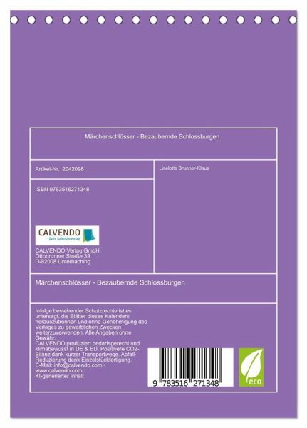 QUALITÄT - Hochwertiger Fotokalender mit 12 wunderschönen Motiven auf lichtbeständigem Bilderdruckpapier, robuste Spiralbindung.NACHHALTIG - deutliche Abfallreduzierung durch bedarfsgerechte Einzelstückfertigung, umweltfreundliches FSC-zertifiziertes Papier, Produktion in Deutschland, klimabewusste Logistik.PERFEKTES GESCHENK - Kalender für Freunde und Familie, für Kinder und Erwachsene, jung und alt, zu Weihnachten, Geburtstag oder zwischendurch.VIELFALT - Bildkalender in verschiedenen Formaten, z.B. DIN A5, DIN A4, DIN A3 sowie DIN A2. Ob Naturmotiv, Gemälde oder Fotos, ideal für ein persönliches Wohlfühlambiente.Wundervolle Fantasieschlösser von Autor(in): Liselotte Brunner-Klaus