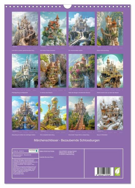 QUALITÄT - Hochwertiger Fotokalender mit 12 wunderschönen Motiven auf lichtbeständigem Bilderdruckpapier, robuste Spiralbindung mit Aufhängebügel.NACHHALTIG - deutliche Abfallreduzierung durch bedarfsgerechte Einzelstückfertigung, umweltfreundliches FSC-zertifiziertes Papier, Produktion in Deutschland, klimabewusste Logistik.PERFEKTES GESCHENK - Kalender für Freunde und Familie, für Kinder und Erwachsene, jung und alt, zu Weihnachten, Geburtstag oder zwischendurch.VIELFALT - Bildkalender in verschiedenen Formaten, z.B. DIN A5, DIN A4, DIN A3 sowie DIN A2. Ob Naturmotiv, Gemälde oder Fotos, ideal für ein persönliches Wohlfühlambiente.Wundervolle Fantasieschlösser von Autor(in): Liselotte Brunner-Klaus