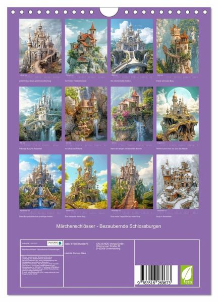 QUALITÄT - Hochwertiger Fotokalender mit 12 wunderschönen Motiven auf lichtbeständigem Bilderdruckpapier, robuste Spiralbindung mit Aufhängebügel.NACHHALTIG - deutliche Abfallreduzierung durch bedarfsgerechte Einzelstückfertigung, umweltfreundliches FSC-zertifiziertes Papier, Produktion in Deutschland, klimabewusste Logistik.PERFEKTES GESCHENK - Kalender für Freunde und Familie, für Kinder und Erwachsene, jung und alt, zu Weihnachten, Geburtstag oder zwischendurch.VIELFALT - Bildkalender in verschiedenen Formaten, z.B. DIN A5, DIN A4, DIN A3 sowie DIN A2. Ob Naturmotiv, Gemälde oder Fotos, ideal für ein persönliches Wohlfühlambiente.Wundervolle Fantasieschlösser von Autor(in): Liselotte Brunner-Klaus
