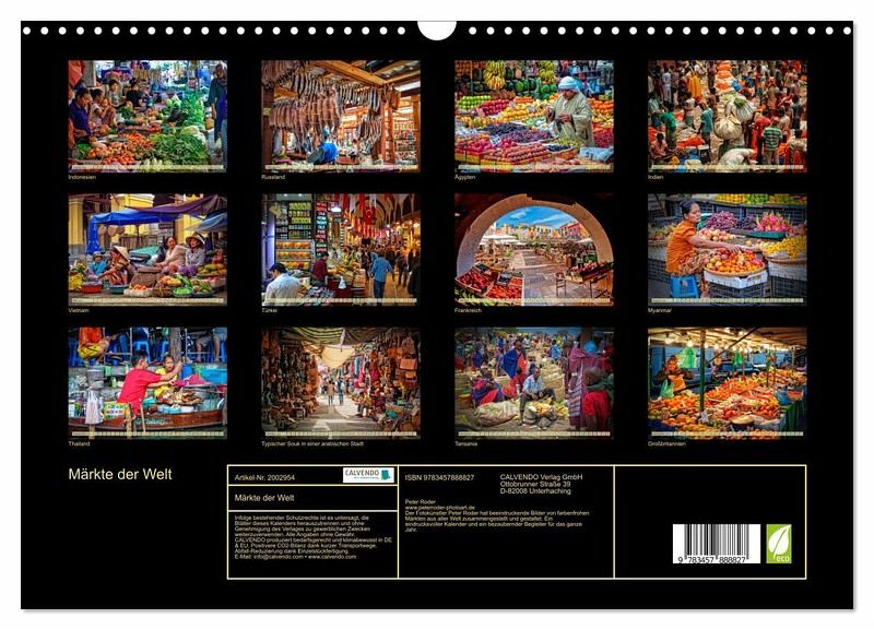 Der Fotokünstler Peter Roder hat beeindruckende Bilder von farbenfrohen Märkten aus aller Welt zusammengestellt und gestaltet. Ein eindrucksvoller Kalender und ein bezaubernder Begleiter für das ganze Jahr.