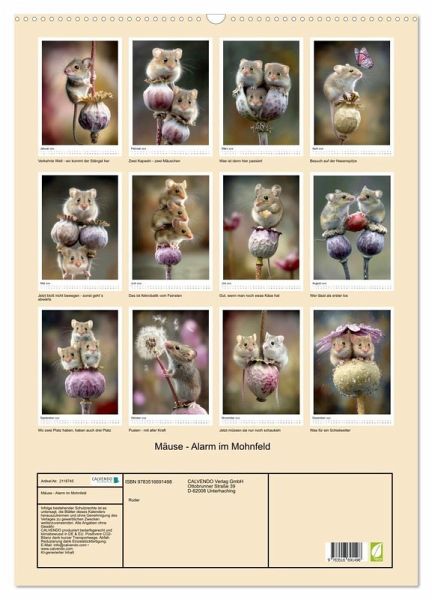 Ein ganzes Jahr voller Mohn und Mäuse - frech, verspielt und einfach zum Verlieben. Inmitten zarter Mohnkapseln treiben die kleinen Nager ihre possierlichen Späße: Sie balancieren, kuscheln, trotzen dem Regen und pusten Träume in die Welt. Mit ihren Knopfaugen und kecken Blicken erobern sie Herzen im Sturm. Gestaltet mit dem Auge fürs Detail betören Sie diese Bilder mit dem Charme der kleinen Mäuschen, wobei die grafische Umsetzung im Zusammenspiel klassischer Gestaltung und ausgewählter KI-basierter Methoden erfolgte. Ein perfektes Geschenk, das nicht nur den Tag, sondern auch das Gemüt heller macht.