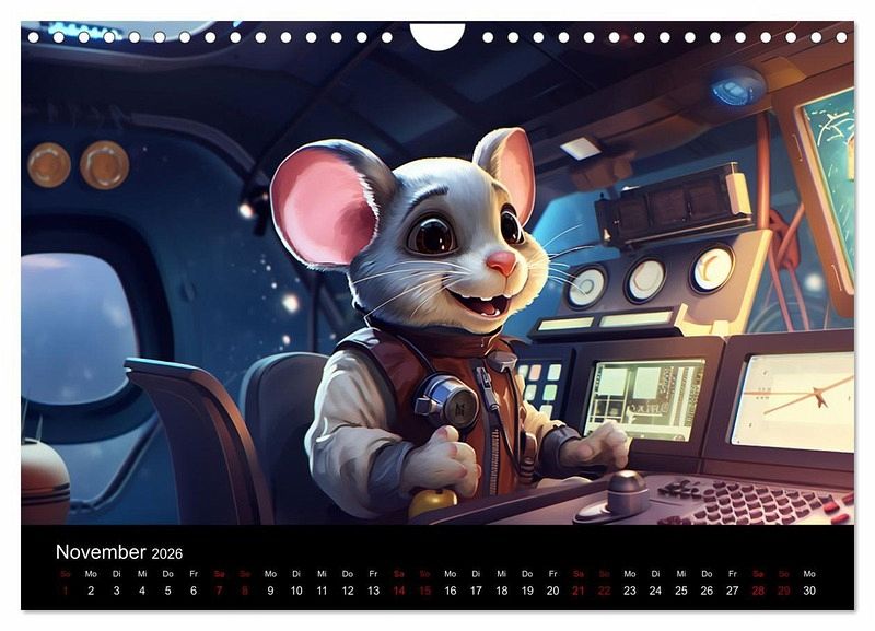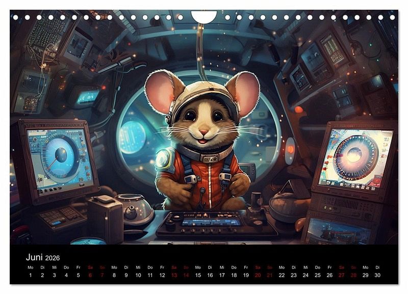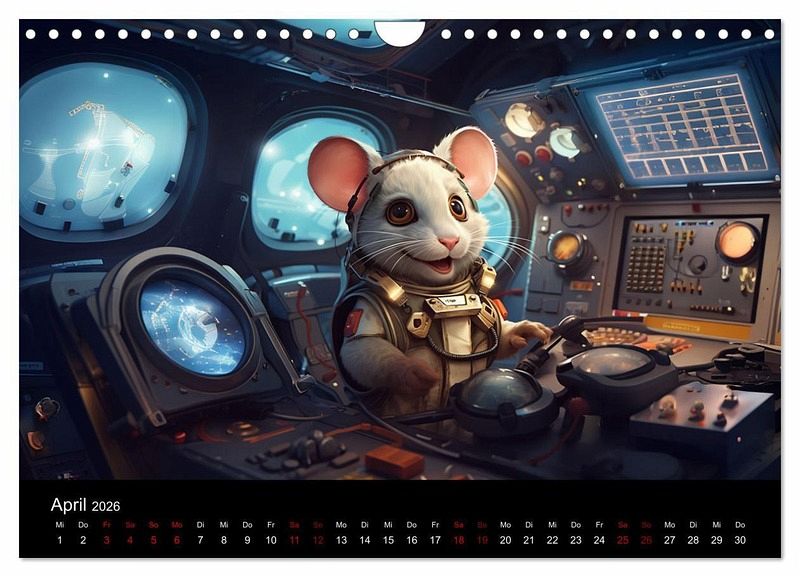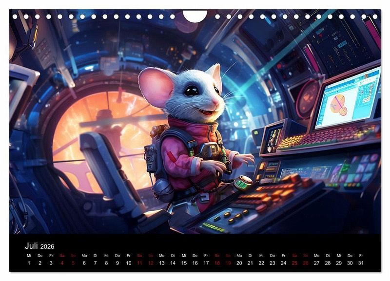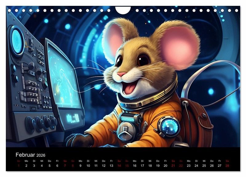 Tauchen Sie ein in eine Welt voller süßer Entdecker! Unser Kalender "Mäuse im All: Eine kosmische Reise" entführt Sie in ein Comic-Abenteuer, das so einzigartig ist wie niedlich. Jeder Monat enthüllt eine entzückende Maus im Raumanzug, die sich auf intergalaktische Missionen begibt. Durch KI generierte Bilder.