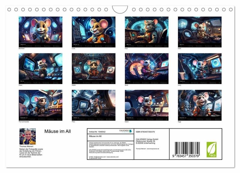 QUALITÄT - Hochwertiger Fotokalender mit 12 wunderschönen Motiven auf lichtbeständigem Bilderdruckpapier, robuste Spiralbindung mit Aufhängebügel.NACHHALTIG - deutliche Abfallreduzierung durch bedarfsgerechte Einzelstückfertigung, umweltfreundliches FSC-zertifiziertes Papier, Produktion in Deutschland, klimabewusste Logistik.PERFEKTES GESCHENK - Kalender für Freunde und Familie, für Kinder und Erwachsene, jung und alt, zu Weihnachten, Geburtstag oder zwischendurch.VIELFALT - Bildkalender in verschiedenen Formaten, z.B. DIN A5, DIN A4, DIN A3 sowie DIN A2. Ob Naturmotiv, Gemälde oder Fotos, ideal für ein persönliches Wohlfühlambiente.Mäuse im All - Eine kosmische Reise. von Autor(in): Thomas Meinert