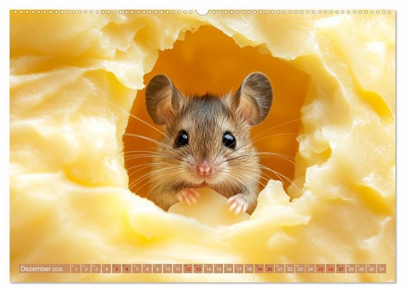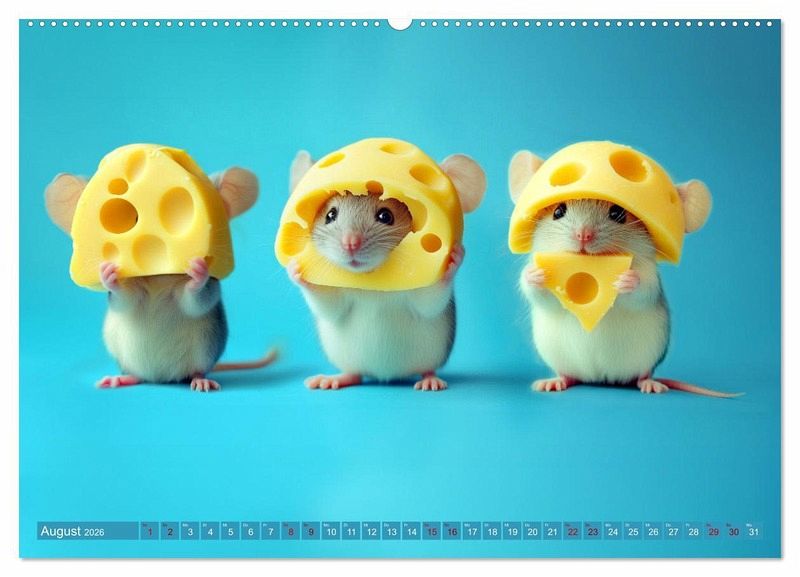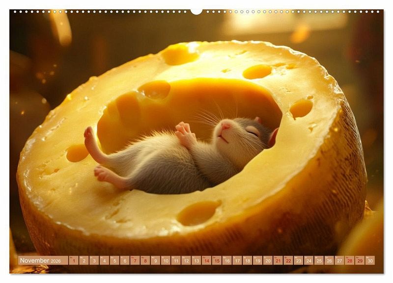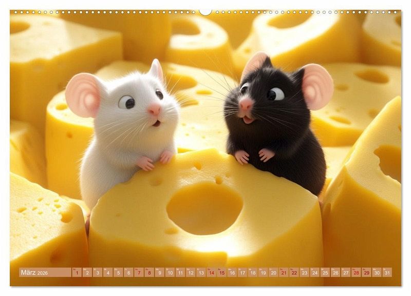 Mäuse lieben natürlich nicht nur Käse, aber farbenfroher Käse und lustige, verfressene Mäuse zusammen ergibt einen Kalender, der Ihren ein Jahr lang immer wieder ein Schmunzeln entlocken wird. Mit Hilfe von künstlicher Intelligenz wurden die Bilder in verschiedenen Stilen generiert und mit Hilfe von Photoshop auf das Niedlichkeitslevel gebracht, dass immer wieder frohe Augenblicke beschert. Alles wird besser mit Käse, ob überbacken oder als Kalender.