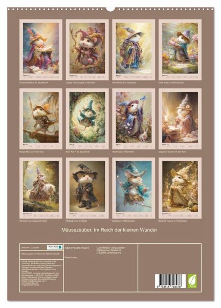 "Mäusezauber" ist eine liebevoll illustrierte Reise durch ein Jahr voller märchenhafter Momente. Zarte Pastelltöne, liebevolle Szenen und magische Mäuse entführen dich in eine Welt, in der selbst der kleinste Zauberspruch Licht ins Herz bringt. Niedliche Wesen in Umhängen und Zauberhüten erzählen Geschichten aus einer vergessenen, friedlichen Welt. Jedes Monatsblatt wurde mit der Hilfe von KI erstellt und öffnet ein neues Fenster in diese Wunderwelt. Ein Kalender, der Ruhe schenkt, Nostalgie weckt und die Magie des Kleinen feiert.