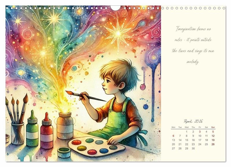 Each month, a magical AI-generated watercolour illustration awaits you, reminding you of life's little wonders. Accompanied by inspiring sayings that touch your soul, this calendar gives you moments full of confidence, courage and playful joie de vivre.