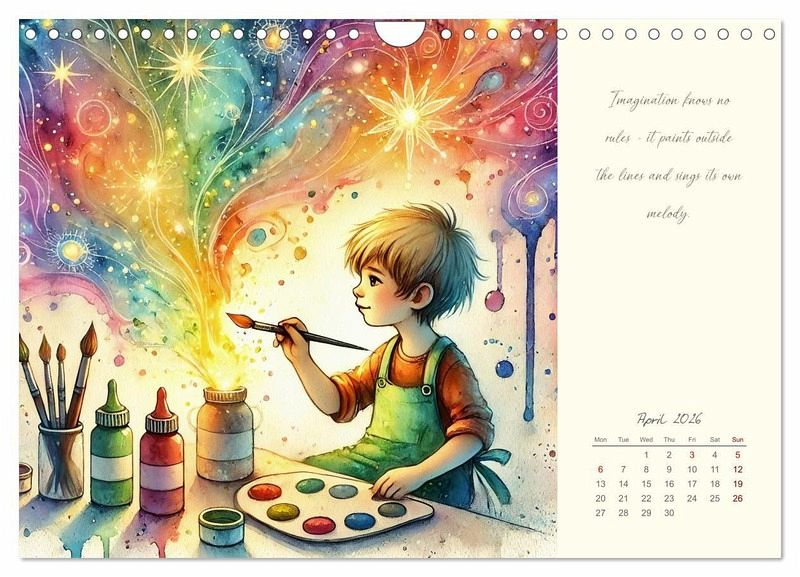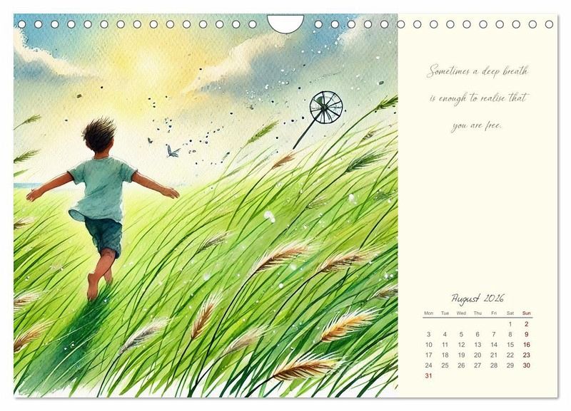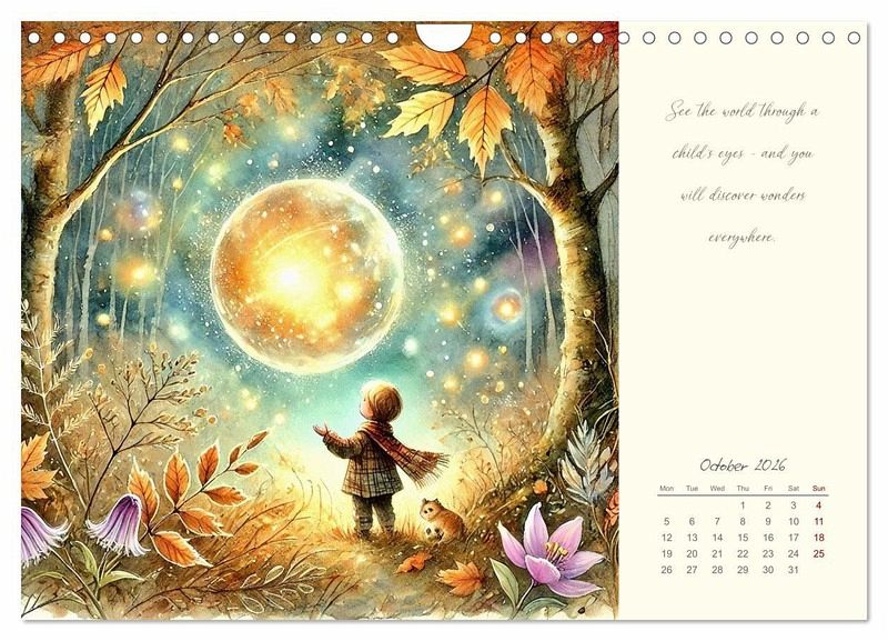 Each month, a magical AI-generated watercolour illustration awaits you, reminding you of life's little wonders. Accompanied by inspiring sayings that touch your soul, this calendar gives you moments full of confidence, courage and playful joie de vivre.