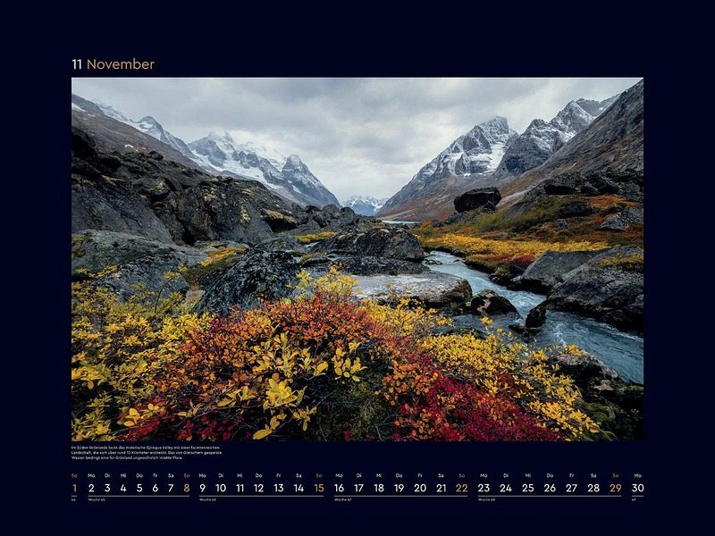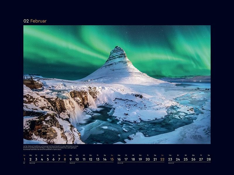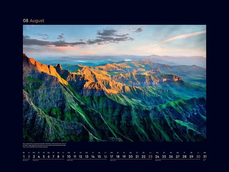 Monat für Monat wartet ein bildstarkes Highlight auf Entdeckung, und ein ansprechendes Kalendarium sorgt für optimalen Nutzen. Die mattschwarzen Rahmen bilden einen starken Kontrast zu den brillanten Fotografien.