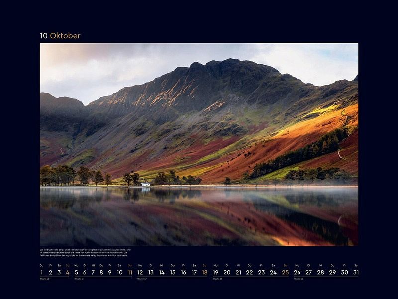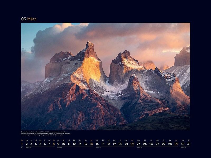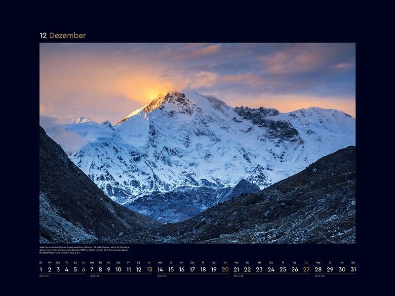 Mit zwölf herausragenden Fotografien schmückt dieser opulente, großformatige KUNTH Wandkalender "Magie der Berge" für 2026 in edlem Design jedes Zimmer - egal ob im Büro, im Home Office oder in Wohnräumen.
