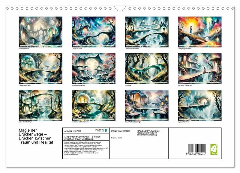 Stellen Sie sich vor, Sie treten in eine Welt ein, in der jede Brücke den Weg zu unendlichen Möglichkeiten ebnet, eine Welt, die mit modernster KI-Technologie zum Leben erweckt wurde. Dieser exklusive Kalender ist mehr als nur ein Zeitmesser, er ist ein visuelles Gedicht, das Traum und Realität ineinanderfließen lässt. Jede Seite enthüllt surreale, fast magische Brückenlandschaften, in denen das Ende einer Passage nur den Anfang einer neuen, faszinierenden Reise markiert. Diese einzigartigen Motive fordern Sie heraus, Ihren eigenen Weg zu wählen, sei es ein Sprung ins Unbekannte oder das behutsame Weitergehen auf beliebten Pfaden.