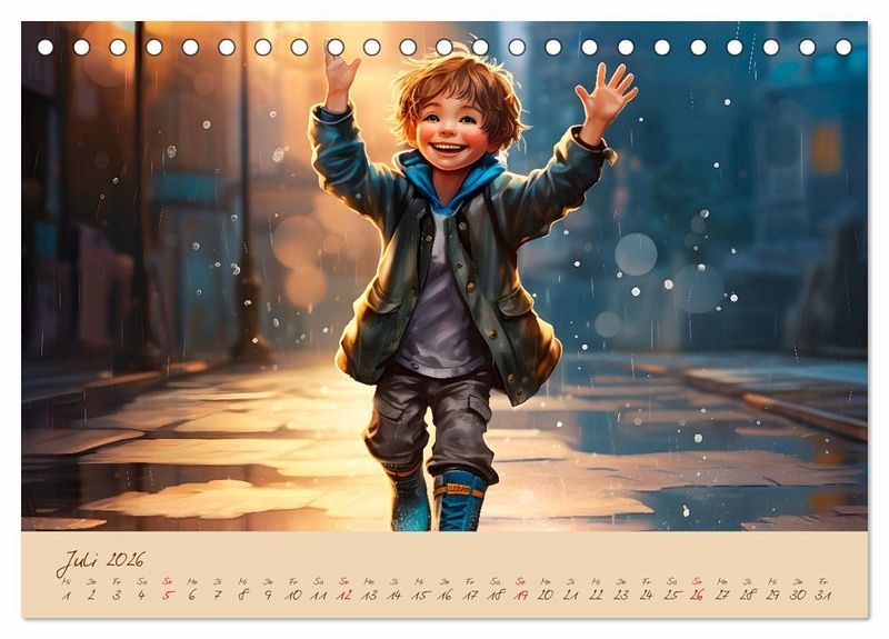 Tauche ein in eine Welt voller Nostalgie und Kindheitserinnerungen mit meinem einzigartigen Kinderkalender! Dieser besondere Kalender für das kommende Jahr entführt dich Monat für Monat in zauberhafte Szenen aus den schönsten Momenten der Kindheit. Erwecke die Freude von Weihnachten zum Leben, wenn leuchtende Augen den geschmückten Baum bestaunen und die Magie der Geschenke das Herz höher schlagen lässt. Reise zurück in die Zeit des Backens mit der Mutter, wenn Mehlwolken durch die Luft wirbelten und süßer Duft die Küche erfüllte. Erlebe erneut den unbeschwerten Spaß, im Regen zu tanzen und dabei jedes Tropfen wie ein kleines Abenteuer zu empfinden. Dieser Kalender mit seinen emotionalen Motive laden dazu ein innezuhalten und in den Erinnerungen zu schwelgen - sei es alleine oder mit der ganzen Familie. Sichere dir jetzt deinen Kalender und schaffe dir ein Jahr voller wunderschöner Erinnerungen!