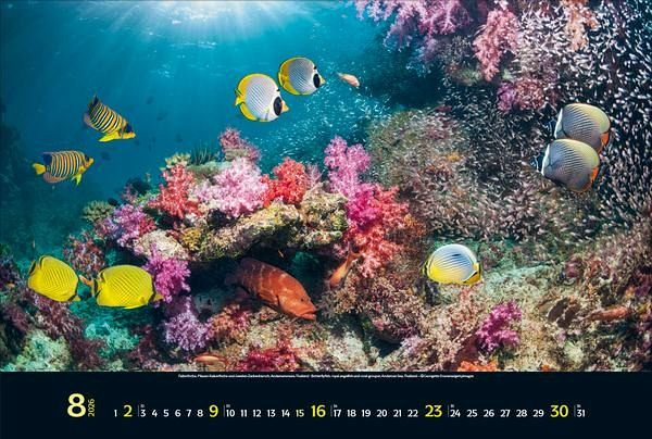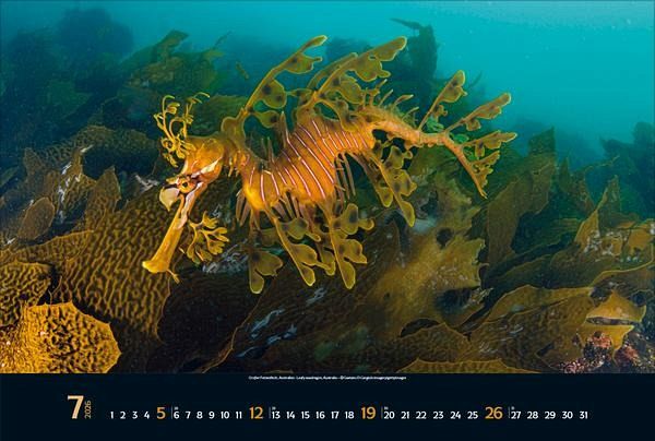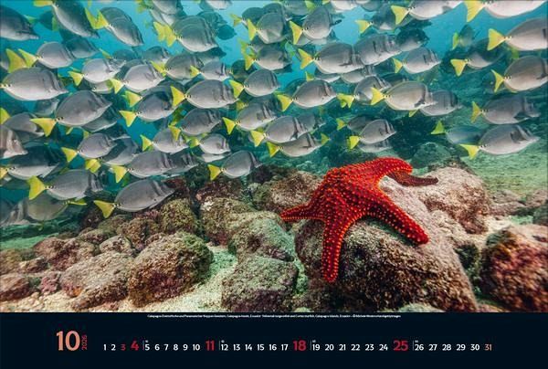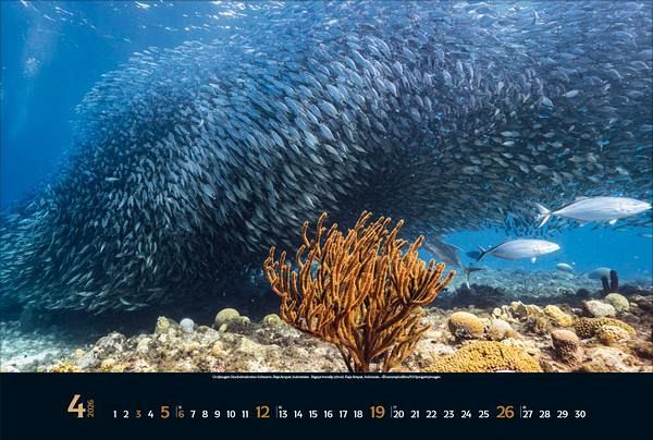 Gigantische Fischschwärme, geheimnisvolle Kraken, schwebende Rochen ? die bunte Unterwasserwelt der Meere ist voller einzigartiger Lebewesen, die uns faszinieren. Tauchen Sie ein und genießen Sie jeden Monat eine neue magische Aufnahme aus den Weltmeeren in brillanter Fotoqualität.