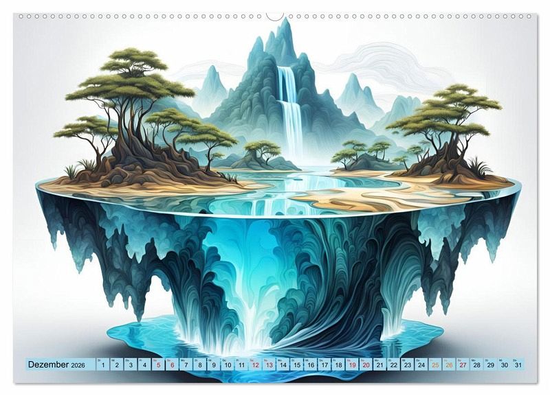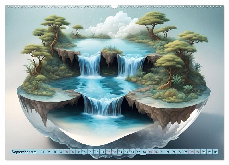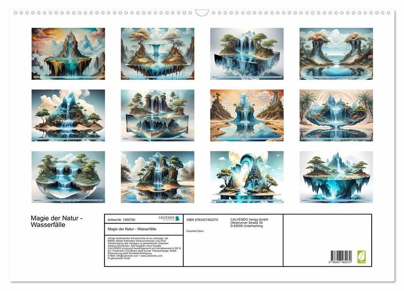 Dieser einzigartige Kalender enthält atemberaubende Bilder von imaginären Wasserfällen, die von künstlicher Intelligenz kreiert wurden. Tauchen Sie ein in eine Welt voller Fantasie und lassen Sie sich von den faszinierenden Details dieser Bilder bezaubern.