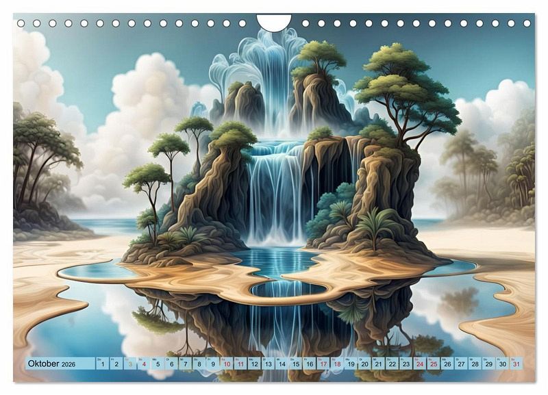 Dieser einzigartige Kalender enthält atemberaubende Bilder von imaginären Wasserfällen, die von künstlicher Intelligenz kreiert wurden. Tauchen Sie ein in eine Welt voller Fantasie und lassen Sie sich von den faszinierenden Details dieser Bilder bezaubern.
