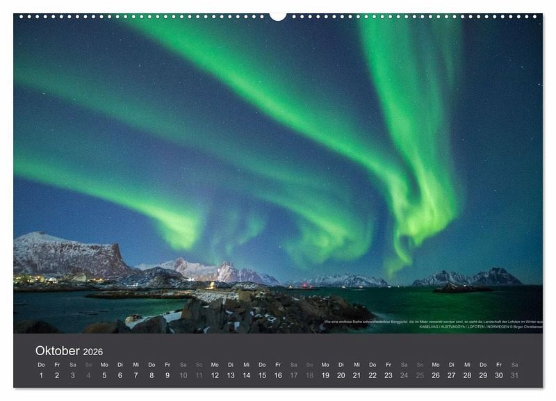 PREMIUM-LINIE - Brillanter Fotokalender mit 12 wunderschönen Motiven, Kunstdruck in Hochglanz in Museumsqualität.QUALITÄT - edle Materialien, stabile Rückwand mit 2 innovativen Einstecktaschen für eine optimale Präsentation an der Wand.NACHHALTIG - deutliche Abfallreduzierung durch bedarfsgerechte Einzelstückfertigung, umweltfreundliches FSC-zertifiziertes Papier, Produktion in Deutschland, klimabewusste Logistik.PERFEKTES GESCHENK - Kalender für Freunde und Familie, für Kinder und Erwachsene, jung und alt, zu Weihnachten, Geburtstag oder zwischendurch.Polarlichter "Aurora borealis" in Nordnorwegen von Autor(in): Lars Grothe