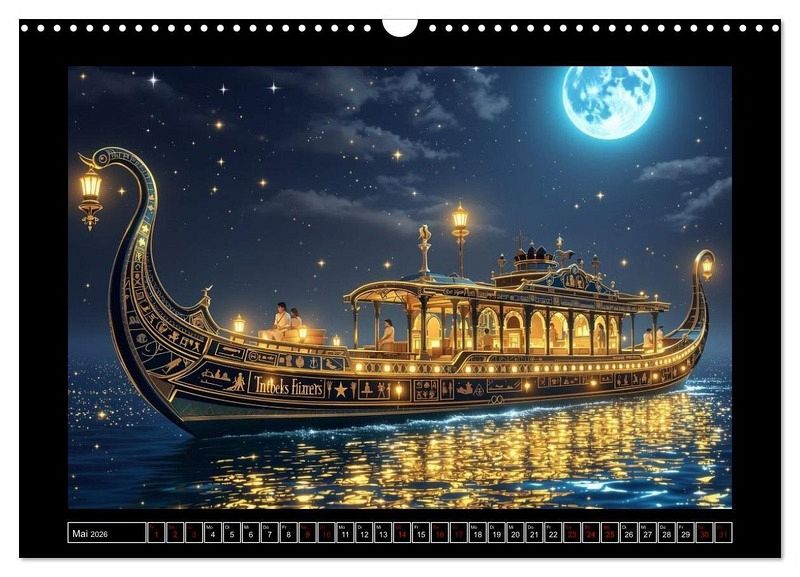 Erlebe mit "Magie der Schiffe" einen einzigartigen Kalender, der dich auf eine leuchtende Reise rund um die Welt entführt! Jedes Motiv präsentiert ein spektakuläres, funkelndes Traumschiff, eingefangen in magischer Nacht und atmosphärischem Glanz - von der majestätischen Galleone im kosmischen Ozean bis zur venezianischen Gondel im Lichtermeer. Lass dich von kunstvollen Details, fantasievollen Lichtspielen und der Schönheit legendärer Wasserfahrzeuge inspirieren, die in jedem Monat eine andere Kultur und Stimmung widerspiegeln. Dieser Kalender ist ein strahlendes Highlight für alle, die maritime Mystik, faszinierende Fantasie und handverlesene Glowing-Art lieben!