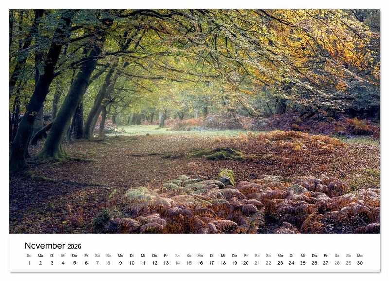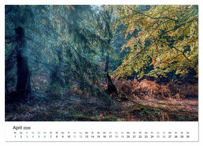 Der Kalender enthält u.a. Motive aus den Wäldern des Peak Districts und dem New Forest.