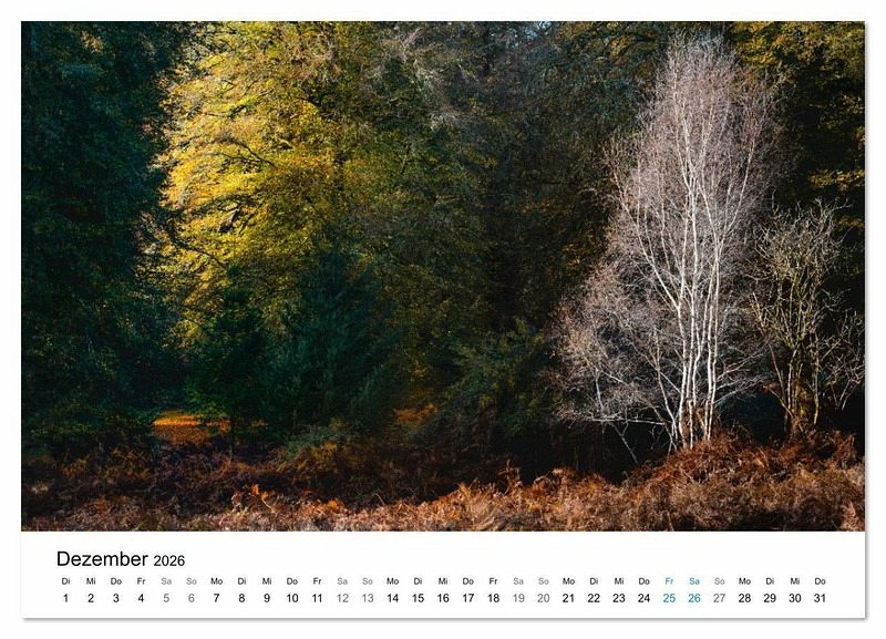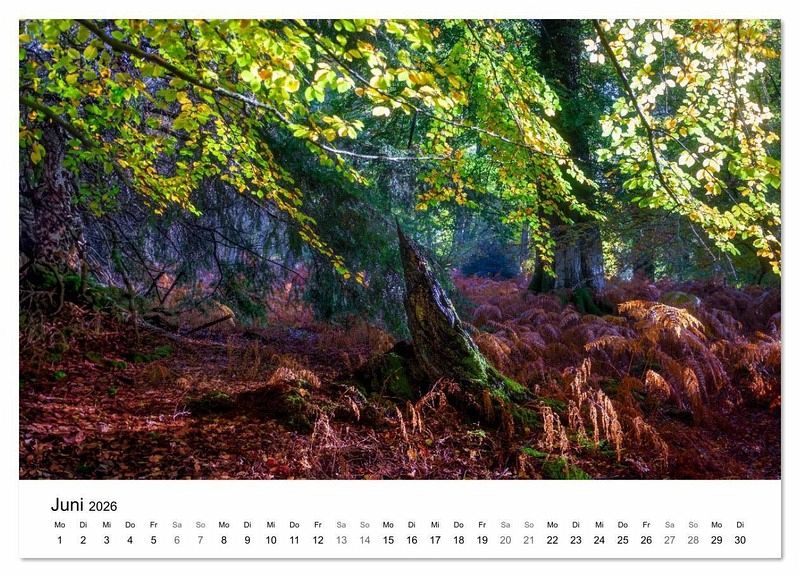 Der Kalender enthält u.a. Motive aus den Wäldern des Peak Districts und dem New Forest.