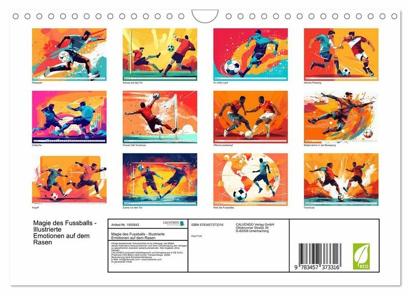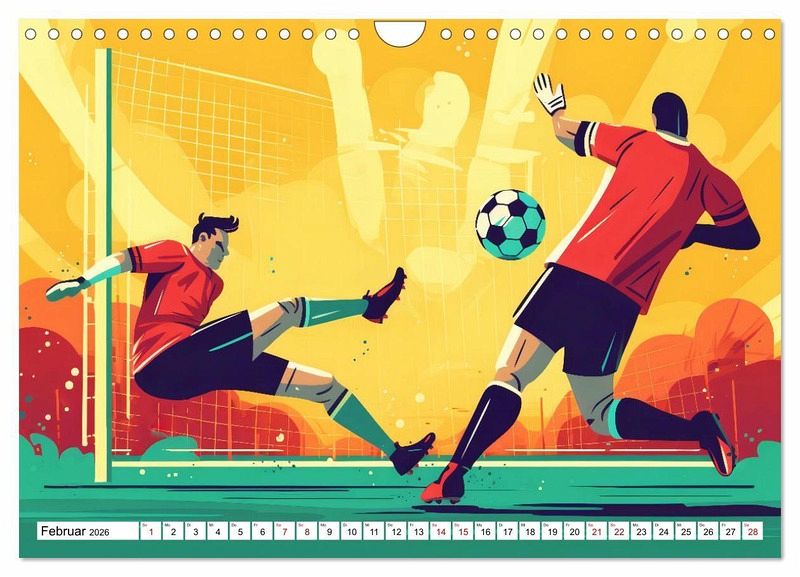 Entdecken Sie die faszinierende Welt des Fußballs mit unserem Fußballkalender. Jeder Monat ist ein visuelles Fest, aus beeindrucken KI-Illustrationen im Vektorstil, die die Spieler zum Leben erwecken. Von mitreißenden Torjubeln über präzise Passkombinationen bis hin zu atemberaubenden Dribblings - dieser Kalender präsentiert die schönsten Momente des Fußballs in einem modernen KI-Design.