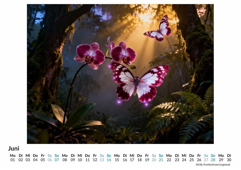 Was passiert, wenn Blumen anfangen zu träumen? Der Kalender "Magische Blumen-Fantasien" gibt eine Antwort in zwölf visionären Monatsbildern, die die Natur in einem völlig neuen Licht zeigen. Dieser Kalender ist eine ideale Wahl: * Für Liebhaber von Fantasiewelten und botanischer Schönheit. * Für alle, die eine außergewöhnliche Wanddekoration suchen. * Für Menschen mit Freude an moderner, digitaler Kunst und surrealen Motiven. Jedes Kalenderblatt enthüllt eine Komposition, in der die Grenzen zwischen Flora und Fantasie verschwimmen. Leuchtende Blütenkelche und Pflanzen, die aus einer anderen Dimension zu stammen scheinen, prägen die Motive. Entstanden aus dem Zusammenspiel von menschlicher Vision und maschineller Schöpfungskraft, zeigt jedes Bild eine neue, unbekannte Facette der Natur. Die Darstellungen sind eine Hommage an die unendlichen Möglichkeiten der Vorstellungskraft und entführen in eine Welt jenseits des Alltäglichen. Beim Kauf dieses Kalenders kann man Folgendes erwarten: * Zwölf surreale Blumenmotive für jeden Monat des Jahres. * Ein übersichtliches Kalendarium zur Planung von Terminen. * Ein visueller Begleiter, der das ganze Jahr über Inspiration schenkt. Der Kalender "Magische Blumen-Fantasien" ist mehr als nur ein Zeitplaner. Er ist ein Fenster in eine Welt, die das Gewöhnliche hinter sich lässt und die Schönheit der Natur neu interpretiert. Eine Entdeckungsreise durch zwölf Monate voller floraler Wunder erwartet den Betrachter.