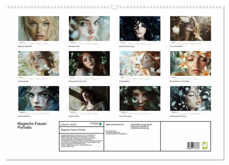 Dieser Kalender begleitet Sie mit schönen und verträumten KI-Portrait Fotos durch das ganze Jahr. Lassen Sie sich durch die magischen Augenblicke verzaubern und in eine andere Welt entführen. Make your own Magic.