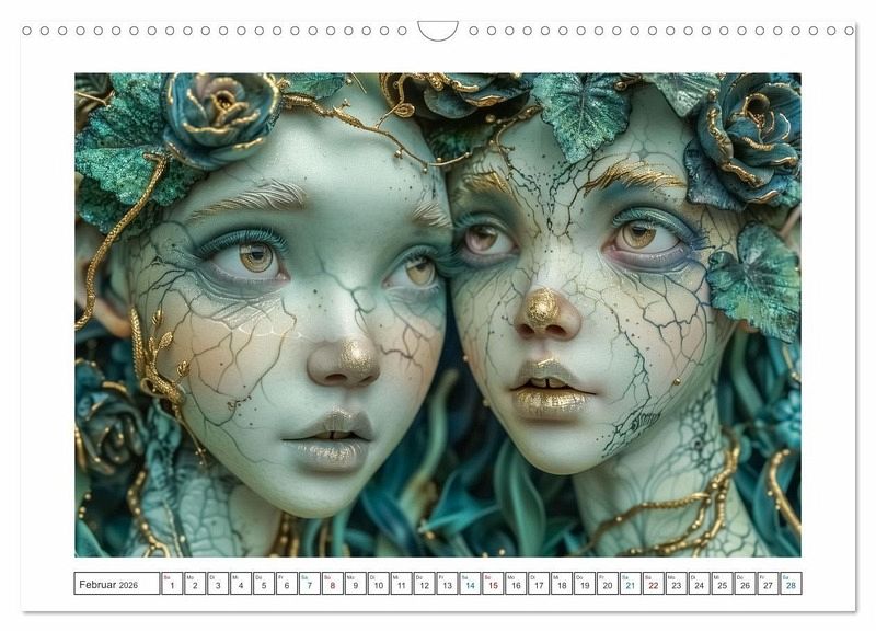 Entdecken Sie die magischen Gesichter, wo jeder Pinselstrich ein Märchen erzählt und jedes Lächeln ein Abenteuer verspricht. Tauchen Sie ein in eine Welt, in der Farben träumen und Formen flüstern. Unsere einzigartigen Kreationen verwandeln Ihr Gesicht in eine lebendige Leinwand, die Geschichten von fernen Welten, geheimen Wünschen und zauberhaften Begegnungen enthüllt. Alle hier gezeigten Bilder wurden mit Sorgfalt, Liebe und mit Hilfe einer KI generiert. Abschließend werden sie mit Bildbearbeitungsprogrammen überarbeitet und in den Kalender eingefügt.