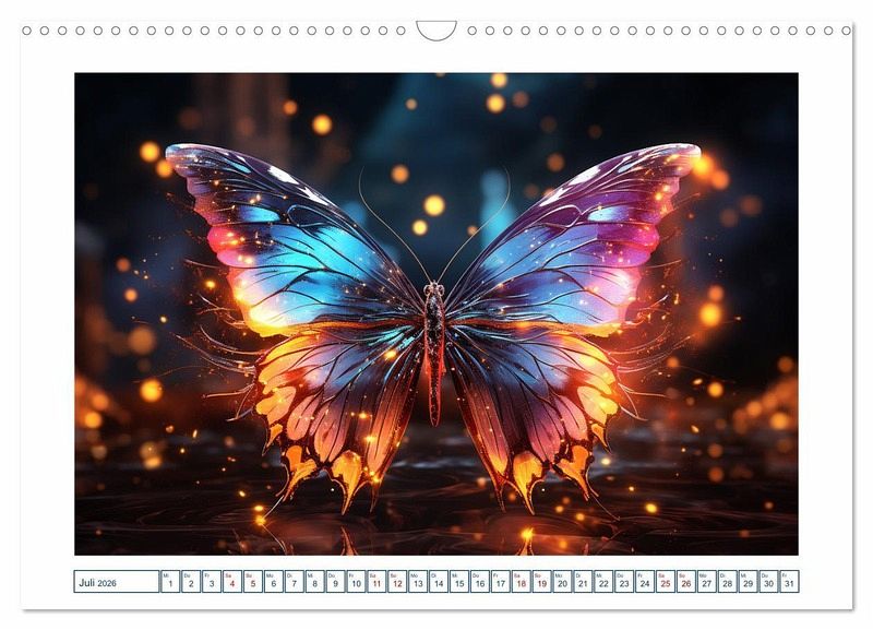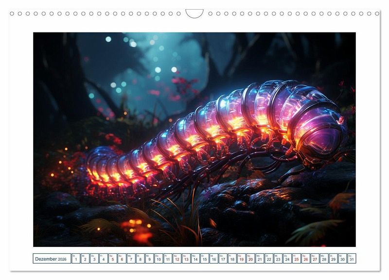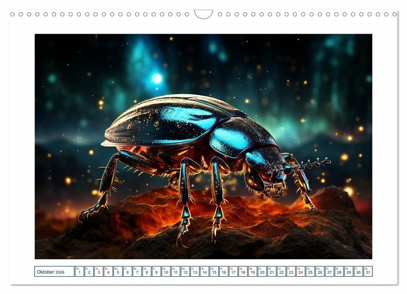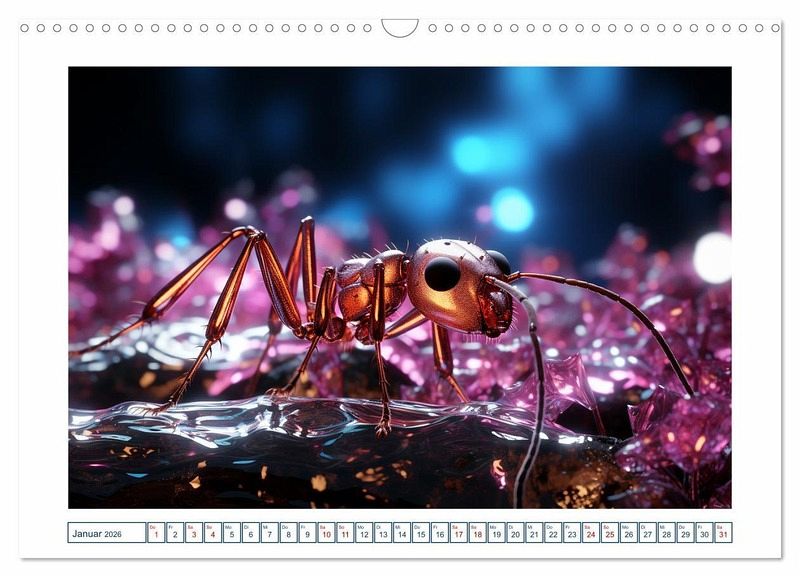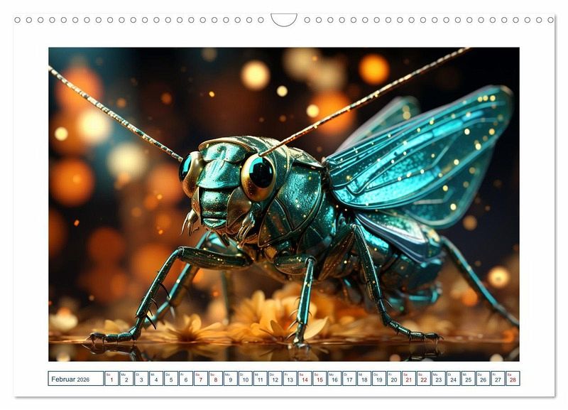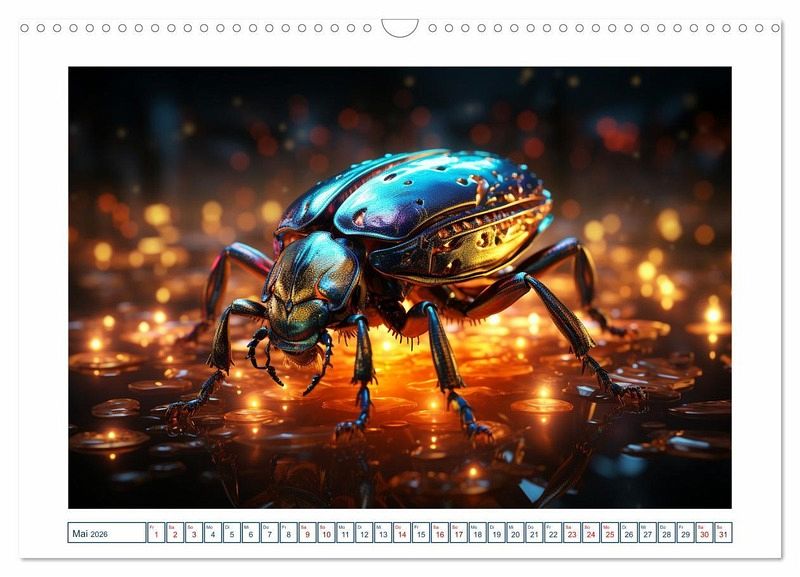 Erleben Sie die Magie der Insektenwelt in neuem Licht mit unserem einzigartigem Kalender. Jeder Monat zeigt ein atemberaubendes von einer KI-Technologie erstelltes Bild eines Insekts mit faszinierenden leuchten Farben in einer magischen Atmosphäre. Unsere Bilder sind so realistisch, dass Sie glauben werden, dass Sie direkt in die Welt der Insekten eintauchen. Die faszinierenden Farben unserer Bilder werden Sie verzaubern und begeistern.