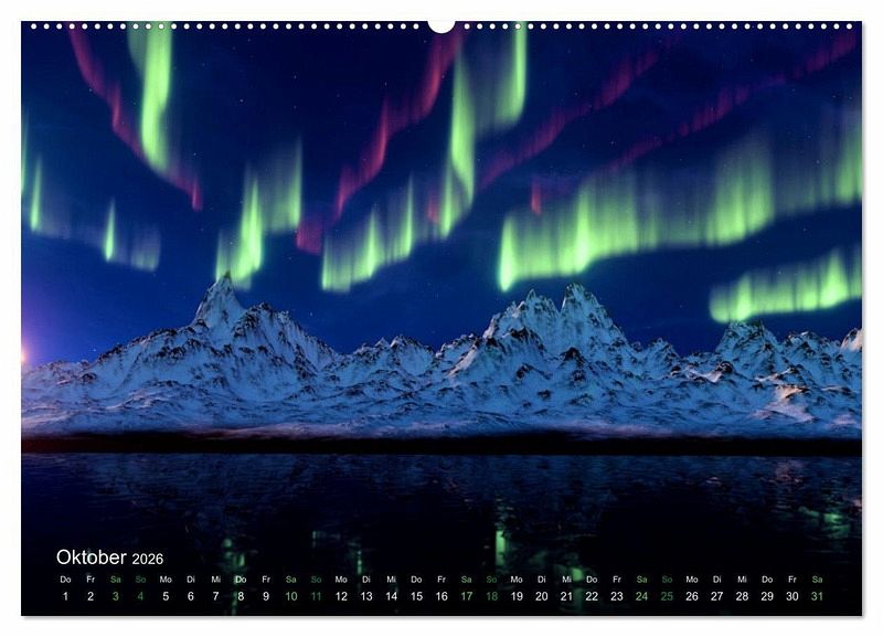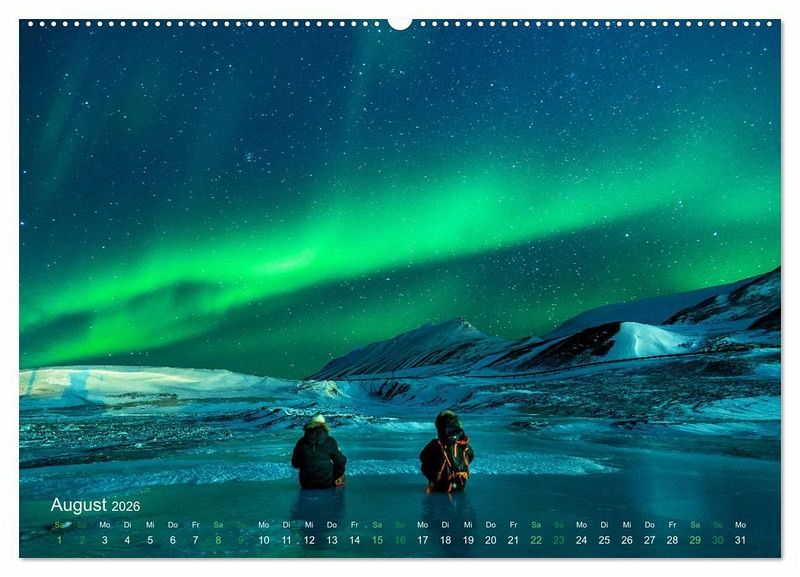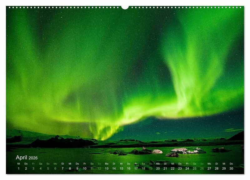Das faszinierende Wechselspiel zwischen Sonne und Erde ist besonders gut in klaren Polarnächten in Kanada, Grönland, Island, im Norden Skandinaviens oder der Antarktis zu beobachten. Das geheimnisvolle Leuchten der rätselhaften Nord- und Südlichter am Himmel kann in den Farben Grün, Rot, Violett oder Blau erscheinen. Lassen Sie sich Monat für Monat von den unvergleichlichen Farbnuancen der Nordlichter am Horizont verzaubern. Das passende Geschenk für alle, die diese einzigartigen Schauspiele unserer Natur lieben.
