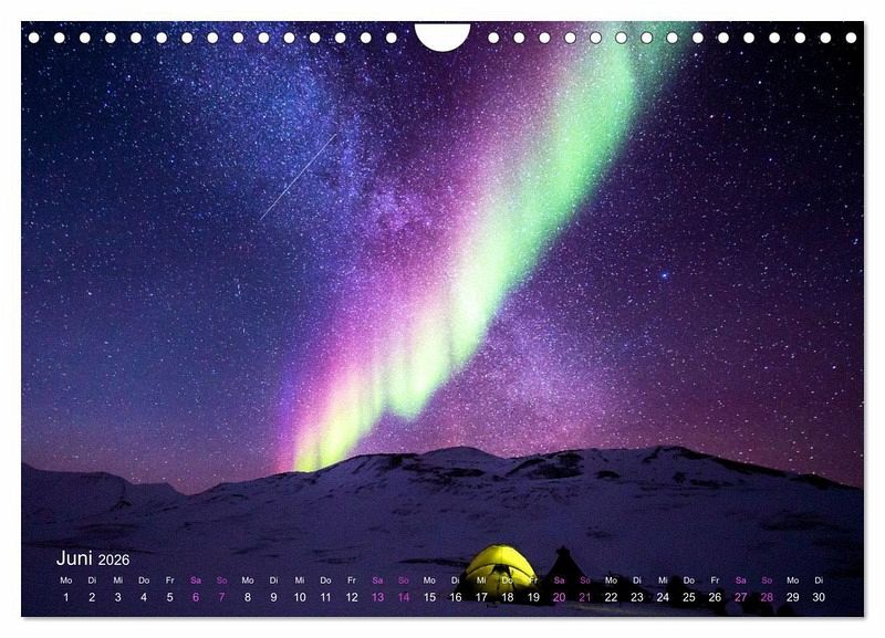 Das faszinierende Wechselspiel zwischen Sonne und Erde ist besonders gut in klaren Polarnächten in Kanada, Grönland, Island, im Norden Skandinaviens oder der Antarktis zu beobachten. Das geheimnisvolle Leuchten der rätselhaften Nord- und Südlichter am Himmel kann in den Farben Grün, Rot, Violett oder Blau erscheinen. Lassen Sie sich Monat für Monat von den unvergleichlichen Farbnuancen der Nordlichter am Horizont verzaubern. Das passende Geschenk für alle, die diese einzigartigen Schauspiele unserer Natur lieben.
