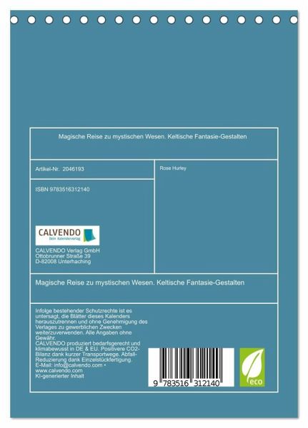 QUALITÄT - Hochwertiger Fotokalender mit 12 wunderschönen Motiven auf lichtbeständigem Bilderdruckpapier, robuste Spiralbindung.NACHHALTIG - deutliche Abfallreduzierung durch bedarfsgerechte Einzelstückfertigung, umweltfreundliches FSC-zertifiziertes Papier, Produktion in Deutschland, klimabewusste Logistik.PERFEKTES GESCHENK - Kalender für Freunde und Familie, für Kinder und Erwachsene, jung und alt, zu Weihnachten, Geburtstag oder zwischendurch.VIELFALT - Bildkalender in verschiedenen Formaten, z.B. DIN A5, DIN A4, DIN A3 sowie DIN A2. Ob Naturmotiv, Gemälde oder Fotos, ideal für ein persönliches Wohlfühlambiente.Ein Kalender voller keltischer und geheimnisvoller Fantasie-Figuren von Autor(in): Rose Hurley