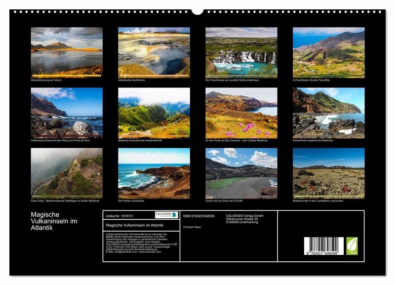 QUALITÄT - Hochwertiger Fotokalender mit 12 wunderschönen Motiven auf lichtbeständigem Bilderdruckpapier, robuste Spiralbindung mit Aufhängebügel.NACHHALTIG - deutlicheAbfallreduzierung durch bedarfsgerechte Einzelstückfertigung, umweltfreundliches FSC-zertifiziertes Papier, Produktion in Deutschland, klimabewusste Logistik.PERFEKTES GESCHENK - Kalender für Freunde und Familie, für Kinder und Erwachsene, jung und alt, zu Weihnachten, Geburtstag oder zwischendurch.VIELFALT - Bildkalender in verschiedenen Formaten, z.B. DIN A5, DIN A4, DIN A3 sowie DIN A2. Ob Naturmotiv, Gemälde oder Fotos, ideal für ein persönliches Wohlfühlambiente.Beeindruckende Foto-Impressionen aus Island, Teneriffa, Madeira und Lanzarote von Autor(in): Christoph Maas