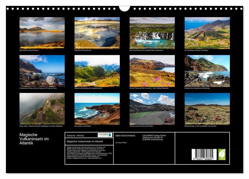 QUALITÄT - Hochwertiger Fotokalender mit 12 wunderschönen Motiven auf lichtbeständigem Bilderdruckpapier, robuste Spiralbindung mit Aufhängebügel.NACHHALTIG - deutlicheAbfallreduzierung durch bedarfsgerechte Einzelstückfertigung, umweltfreundliches FSC-zertifiziertes Papier, Produktion in Deutschland, klimabewusste Logistik.PERFEKTES GESCHENK - Kalender für Freunde und Familie, für Kinder und Erwachsene, jung und alt, zu Weihnachten, Geburtstag oder zwischendurch.VIELFALT - Bildkalender in verschiedenen Formaten, z.B. DIN A5, DIN A4, DIN A3 sowie DIN A2. Ob Naturmotiv, Gemälde oder Fotos, ideal für ein persönliches Wohlfühlambiente.Beeindruckende Foto-Impressionen aus Island, Teneriffa, Madeira und Lanzarote von Autor(in): Christoph Maas