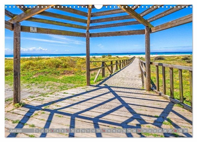 Juni: Ein Holzsteg führt zum Strand in Costa de la Luz