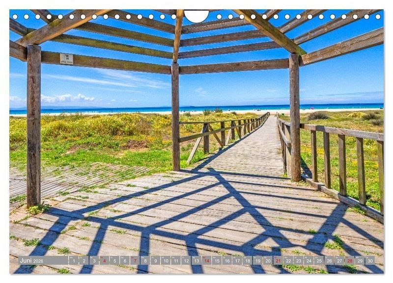 Juni: Ein Holzsteg führt zum Strand in Costa de la Luz