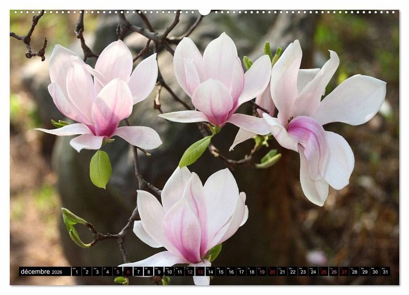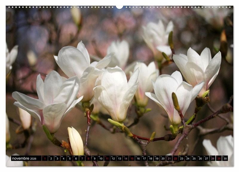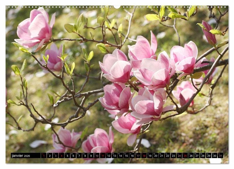 Le magnolia fait sa grande entrée lorsque les premières journées chaudes annoncent le printemps. Ses fleurs en forme de porcelaine sont d'une beauté difficile à égaler et attirent tous les regards. Malheureusement, les fleurs peuvent rapidement tomber en cas de gel nocturne tardif. Ce magnifique calendrier vous épargne cette déception avec des photos de rêve de fleurs de magnolia qui ne se fanent jamais.