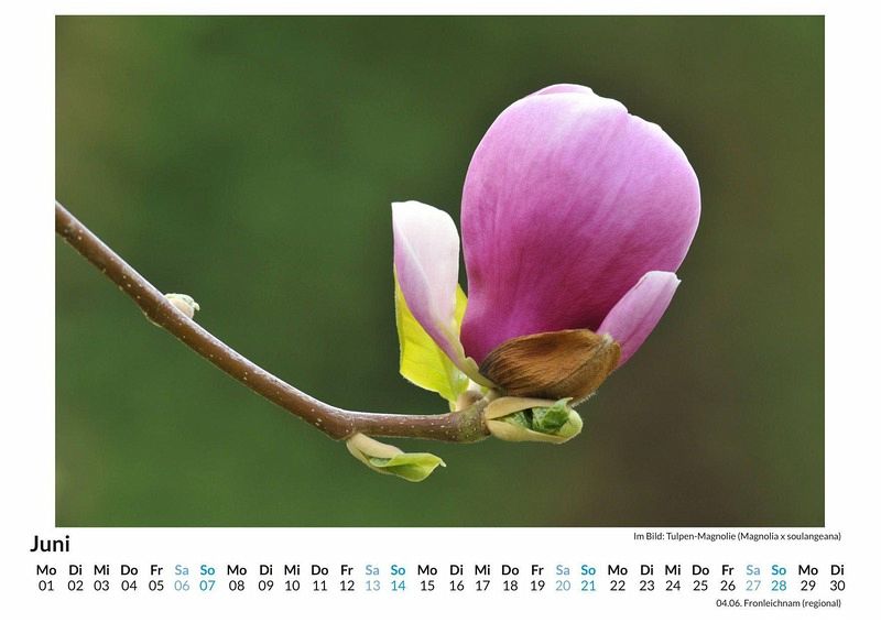 Entdecken Sie die zeitlose Schönheit der Magnolien mit unserem exklusiven Wandkalender! Lassen Sie sich Monat für Monat von 12 atemberaubenden Motiven verzaubern, die die Eleganz und Anmut dieser faszinierenden Blüten perfekt einfangen. Gedruckt auf hochwertigem, lichtbeständigem Bilderdruckpapier, bleiben die Farben der Magnolien das ganze Jahr über strahlend. Nachhaltigkeit liegt uns am Herzen: Unsere Kalender werden in Deutschland auf FSC-zertifiziertem Papier produziert. Gönnen Sie sich oder Ihren Liebsten ein Stück Natur für die Wand - ein stilvolles Highlight für jedes Zuhause oder Büro. Jetzt bestellen und jeden Monat neu genießen! Hochwertig Erleben Sie ein Jahr voller Eleganz mit unserem Premium-Fotokalender. Jedes der 12 Motive ist auf hochwertigem, lichtbeständigem Bilderdruckpapier gedruckt, um die Lebendigkeit jedes Bildes zu bewahren. Die robuste Spiralbindung gewährleistet Langlebigkeit und einfache Handhabung. Nachhaltig Unser Engagement für die Umwelt spiegelt sich in jedem Exemplar wider. Durch die Produktion auf Abruf reduzieren wir signifikant unseren Abfall. Wir verwenden ausschließlich umweltfreundliches, FSC-zertifiziertes Papier. Stolz gefertigt in Deutschland, achten wir bei unserer Logistik auf Klimaschutz, um unseren ökologischen Fußabdruck zu minimieren. Das ideale Geschenk Dieser Kalender ist das perfekte Präsent für jeden Anlass - ob Weihnachten, Geburtstage oder einfach als liebevolle Aufmerksamkeit zwischendurch. Geeignet für Freunde, Familie, Kinder und Erwachsene gleichermaßen, bereichert er jedes Zuhause mit seiner Vielfalt und Schönheit, unabhängig vom Alter der Beschenkten.