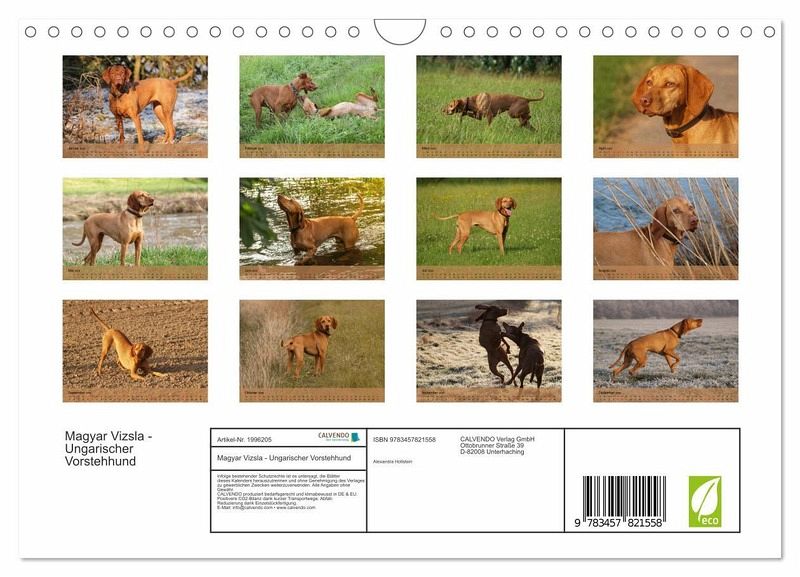 QUALITÄT - Hochwertiger Fotokalender mit 12 wunderschönen Motiven auf lichtbeständigem Bilderdruckpapier, robuste Spiralbindung mit Aufhängebügel.NACHHALTIG - deutliche Abfallreduzierung durch bedarfsgerechte Einzelstückfertigung, umweltfreundliches FSC-zertifiziertes Papier, Produktion in Deutschland, klimabewusste Logistik.PERFEKTES GESCHENK - Kalender für Freunde und Familie, für Kinder und Erwachsene, jung und alt, zu Weihnachten, Geburtstag oder zwischendurch.VIELFALT - Bildkalender in verschiedenen Formaten, z.B. DIN A5, DIN A4, DIN A3 sowie DIN A2. Ob Naturmotiv, Gemälde oder Fotos, ideal für ein persönliches Wohlfühlambiente.Mit dem ungarischen Vorstehhund durch das Jahr von Autor(in): Alexandra Schäfer