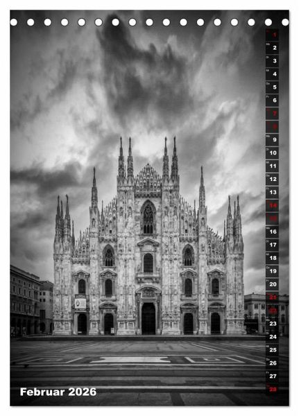 Mailand ist bekannt für einzigartige sakrale Bauten, imposante Paläste, zahlreiche Skulpturen, eindrucksvolle Plätze und das weltberühmte Opernhaus Scala. Viele Spuren aus der Antike sind in der italienischen Stadt zu finden. Entdecken Sie mit diesem Kalender die faszinierende Schönheit der lombardischen Hauptstadt in 12 ausgewählten monochromen Motiven.
