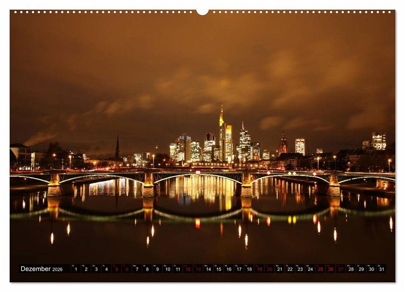Dieser Kalender beinhaltet wunderschöne und spektakuläre Bilder der Stadt Frankfurt am Main. Dabei sind hauptsächlich Motive der unverwechselbaren Skyline zu sehen sowie Bilder, die die Schnelllebigkeit und Bewegung der Metropole zeigen. Besonders ist dabei, dass viele Bilder neben der Großstadt spektakuläre Sonnenuntergänge zeigen oder bei Nacht aufgenommen worden sind.