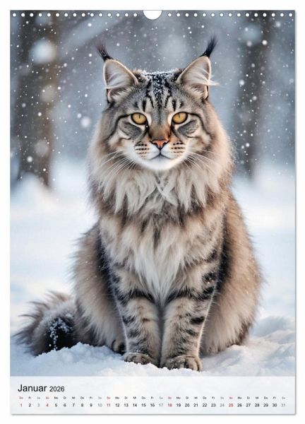 Katzenkalender für echte Tierfreunde: Entdecken Sie die majestätische Schönheit der Maine Coon Katze in eindrucksvollen Bildern voller Anmut und Charakter. Diese sanften Riesen begeistern durch ihre Ausstrahlung und ihre verspielte Seite, die in allen Jahreszeiten stimmungsvoll eingefangen wurde. Ob im Schnee, zwischen Frühlingsblüten, auf Sommerwiesen oder im bunten Herbstlaub - jede Szene zeigt die Eleganz dieser beliebten Rasse. Ideal als Geschenk für Katzenliebhaber oder als dekorativer Blickfang verschönert der Kalender Wohnzimmer, Büro oder Praxis. Maine Coon Fans schätzen die Mischung aus stolzen Porträts und liebevollen Momenten, die ein ganzes Jahr begleiten. Bilder mit KI generiert. Ein hochwertiger Katzenkalender, der Freude und Inspiration schenkt.
