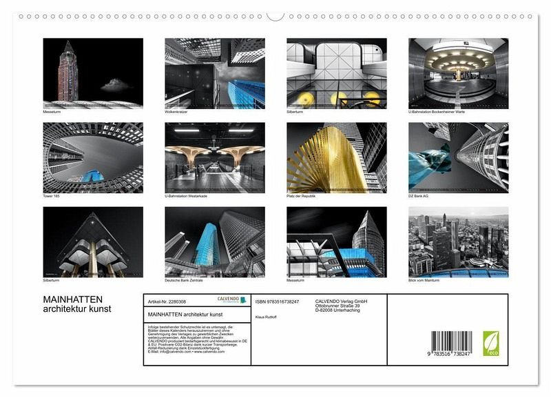 PREMIUM-LINIE - Brillanter Fotokalender mit 12 wunderschönen Motiven, Kunstdruck in Hochglanz in Museumsqualität.QUALITÄT - edle Materialien, stabile Rückwand mit 2 innovativen Einstecktaschen für eine optimale Präsentation an der Wand.NACHHALTIG - deutliche Abfallreduzierung durch bedarfsgerechte Einzelstückfertigung, umweltfreundliches FSC-zertifiziertes Papier, Produktion in Deutschland, klimabewusste Logistik.PERFEKTES GESCHENK - Kalender für Freunde und Familie, für Kinder und Erwachsene, jung und alt, zu Weihnachten, Geburtstag oder zwischendurch.Frankfurts Architektur auf besondere Art dargestellt. von Autor(in): Klaus Ruttloff