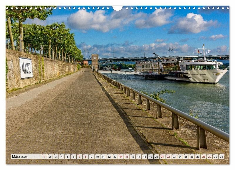 März: Stresemann-Ufer mit Flusskreuzfahrtschiff