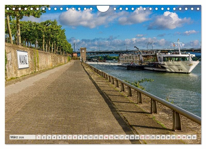 März: Stresemann-Ufer mit Flusskreuzfahrtschiff