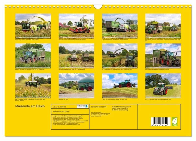 Wenn der Herbst kommt rollen sie wieder, die Erntekolonnen mit Maishäcksler, Traktoren mit Ladewagen und Walzschlepper, um die Maisfelder abzuernten. Dieser Kalender zeigt dynamische Aufnahmen einer Erntekolonne, sodass man das Gefühl bekommt, als würde man direkt die Ernte verfolgen. Wagen für Wagen wird mit modernster Technologie gefüllt, um dann das zerkleinerte Erntegut zum Landwirt zu transportieren. Es gehört definitiv Erfahrung dazu, diese fast 40 Tonnen schweren Gespannte sicher im Feld und auf der Straße zu bewegen.